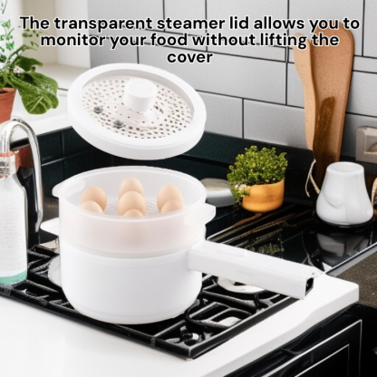 ● The transparent steamer lid allows you to monitor your food without lifting the cover, preserving heat and nutrients for healthier, tastier meals.